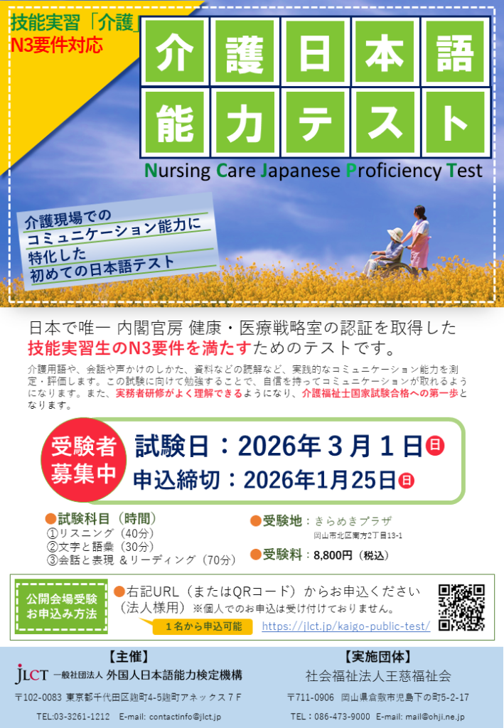 お知らせ2026年1月2日介護日本語能力テスト(JLCT)開催のご案内